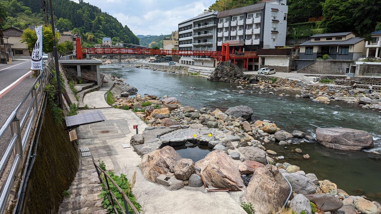 岐阜の飛騨にも川の中の温泉があって女が入ってるぞ、上から覗けるぞって旅行したとき親父が誰かが騒いでた