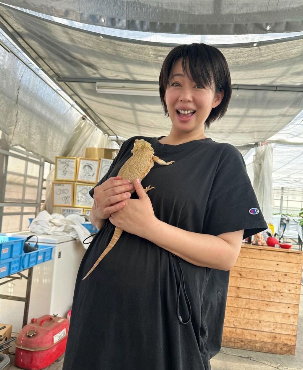 井上は「今シーズンはたくさんいちご狩りに行けたなー」とつづり、いちご狩りでのオフショットを公開。娘との2ショットや農園にいるトカゲをふっくらとしたお腹に乗せた写真などを披露していた。