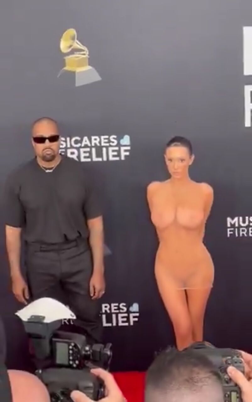 ドヤ顔の嫁と無表情で突っ立ってるカニエの対比がおもろい
